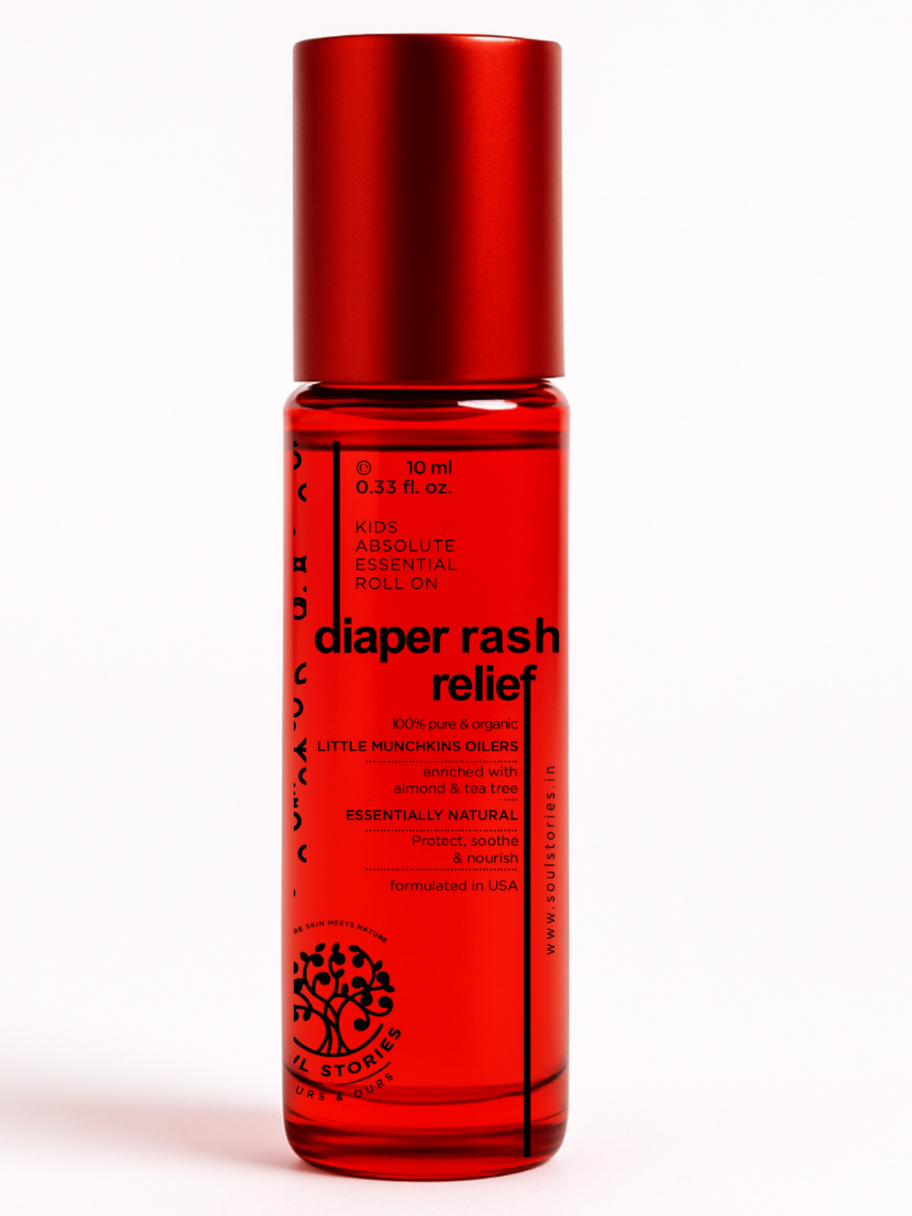 At Soul Stories, we believe in providing nurturing and natural care for every stage of life, especially for the most delicate needs of babies. Diaper Rash Relief is a soothing oil designed to protect, heal, and comfort your baby’s sensitive skin. This gentle formula is crafted to calm irritation, reduce redness, and create a protective barrier, ensuring soft, rash-free skin.