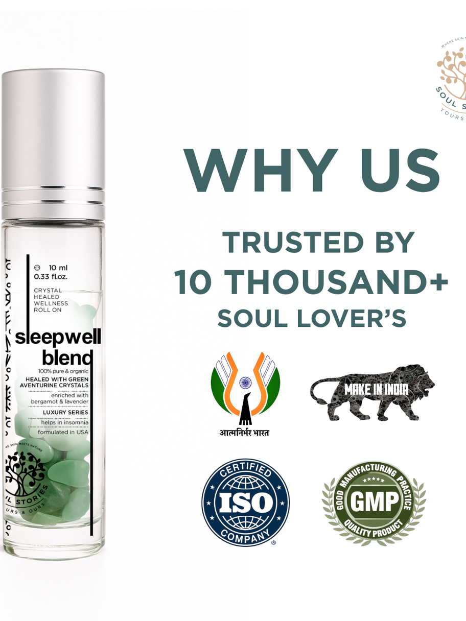At Soul Stories, we value restful sleep. Our Sleep Well Blend promotes relaxation, reduces stress, and seamlessly integrates into Travel Ease, Pregnancy Care, Crystal Healed Wellness, and Wellness, making it an essential self-care companion.
